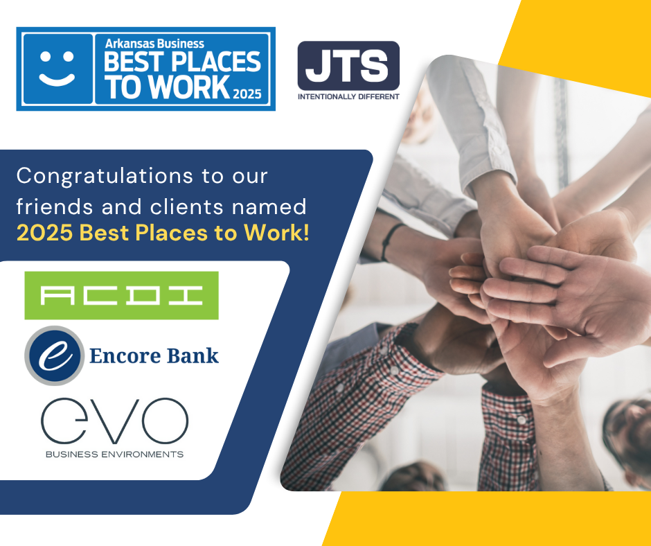 Last week, JTS leaders and team members attended a luncheon event sponsored by Arkansas Business Publishing Group, where JTS was named one of the “Best Places to Work” in Arkansas.